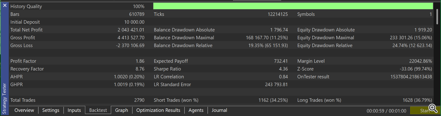 Right here ethusdt backtest based mostly on binance information (free obtain). Default settings.