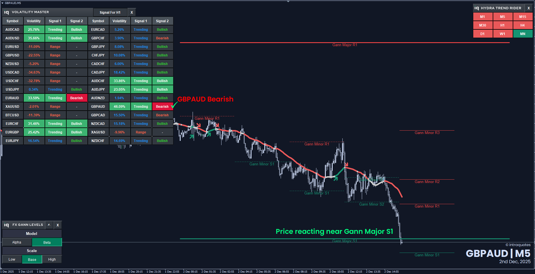 And? Look ahead to the value to verify the pattern change earlier than a purchase entry (test for Hydra entry sign), or look forward to the value to interrupt the Gann Main Help degree 1 efficiently earlier than a promote entry.