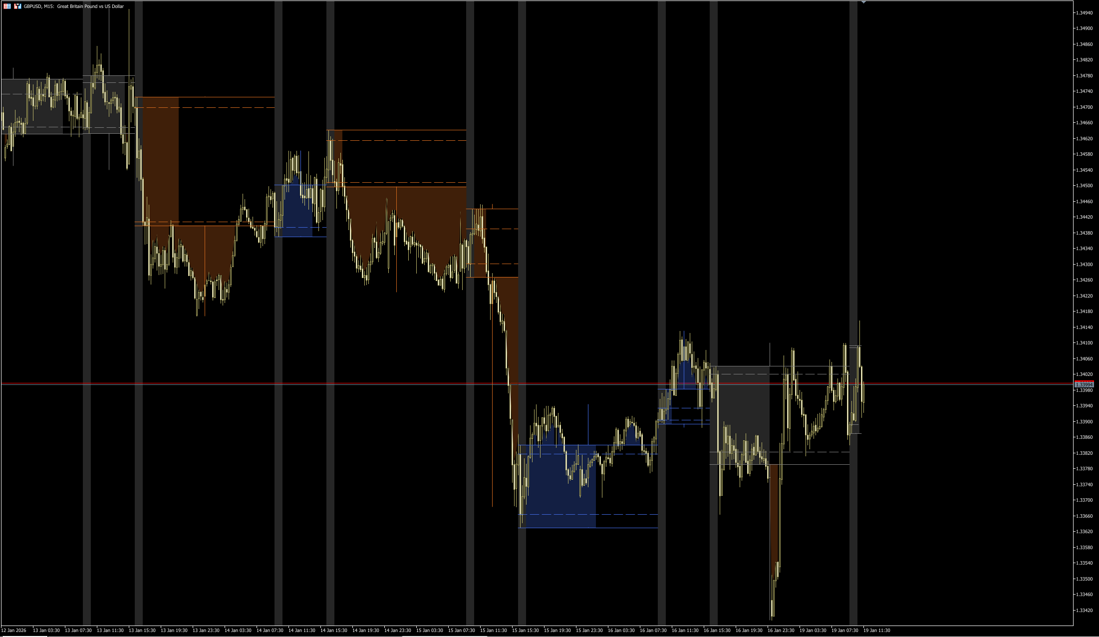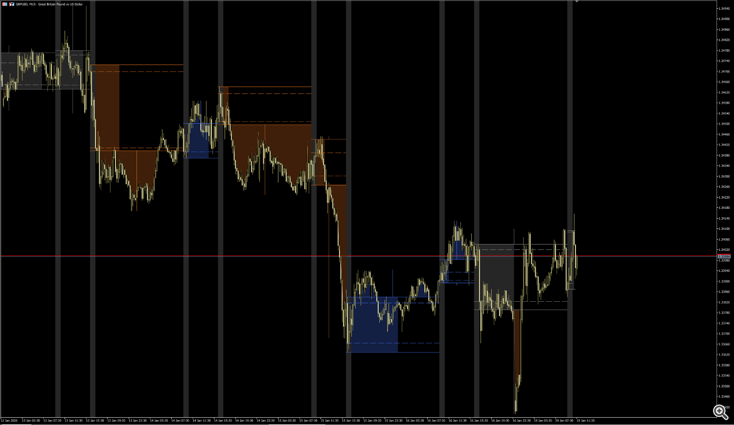 The DR IDR Candles Indicator is a session-based evaluation instrument for MetaTrader 5 designed to visualise day by day and intraday value ranges immediately on the chart. It highlights particular candles that signify Every day Vary (DR) and Intraday Vary (IDR), serving to merchants higher perceive session habits.