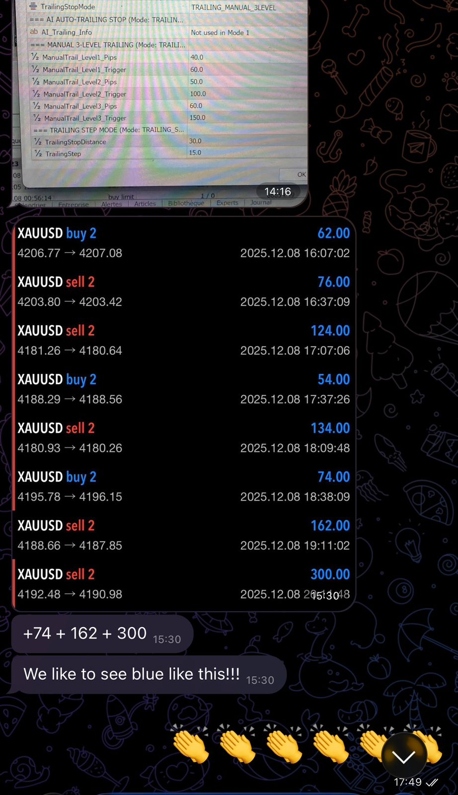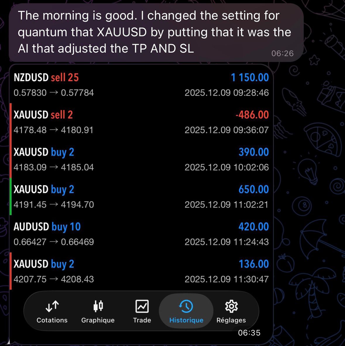 > Caption: Consumer suggestions displaying how the AI inside Quantum dynamically adjusted the TP and SL for XAUUSD, securing earnings even in advanced situations.